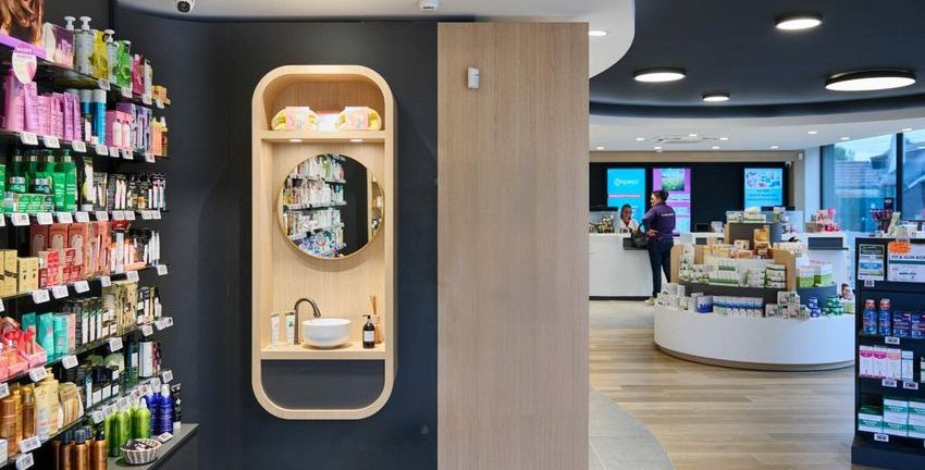 Rénovation de la pharmacie Van Haeverbeeck à Woluwé-Saint-Pierre. Focus sur l’optimisation d’un petit espace.